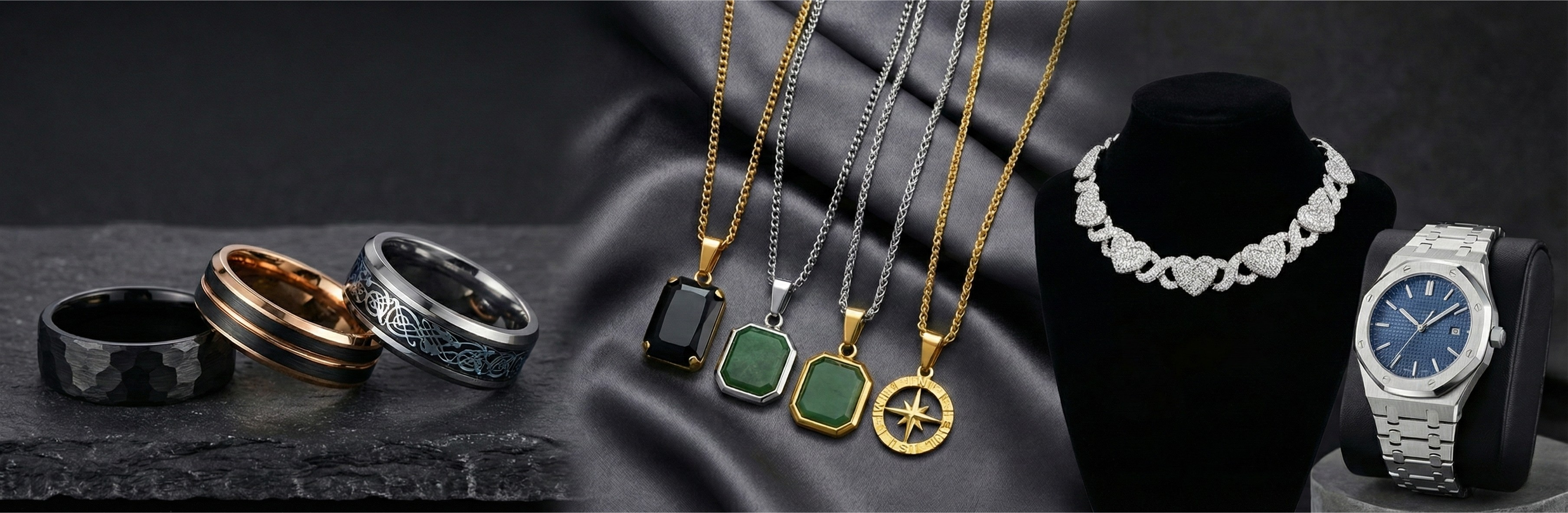 Quality jewelry without the luxury price tag. We source premium materials and ship direct, so you get stainless steel rings, watches, and accessories at a fraction of high-street prices. NZ-based, globally loved.